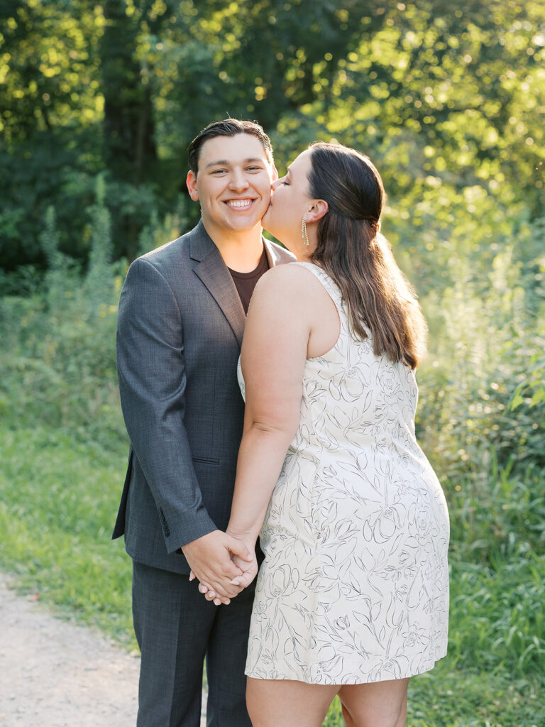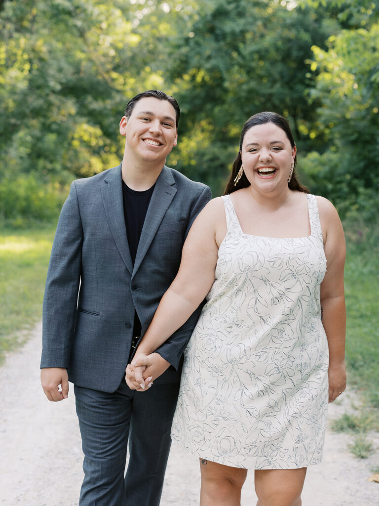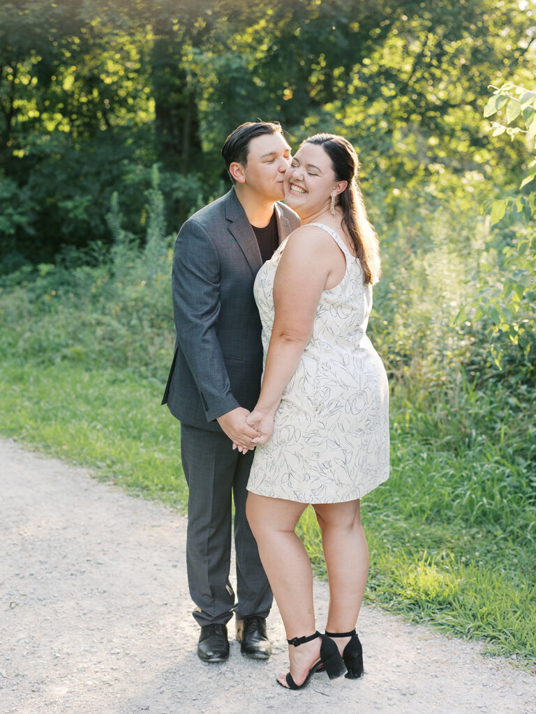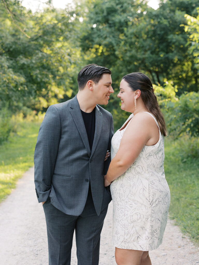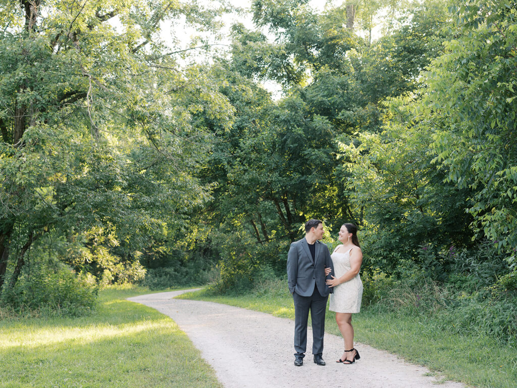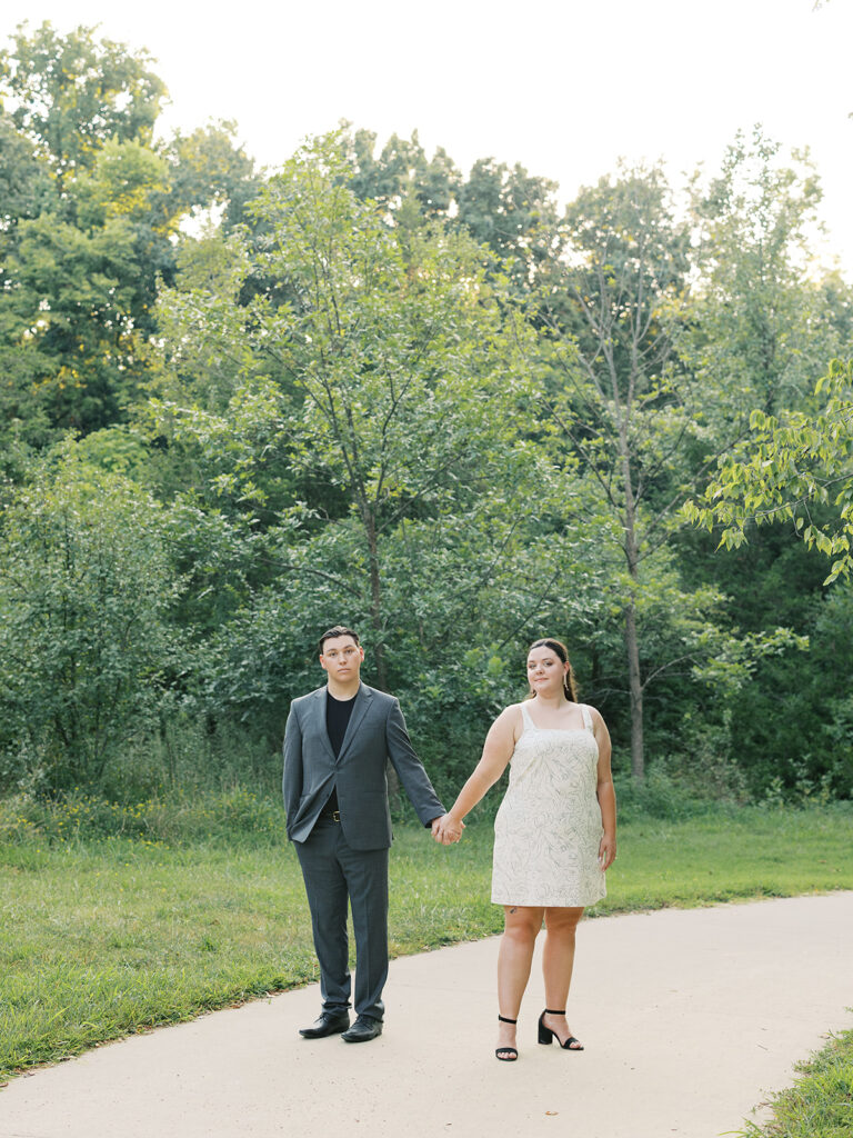 Summer evenings in Columbia, Missouri create the perfect setting for relaxed engagement photos. Warm light, lush greenery, and quiet park paths give couples space to slow down and simply enjoy being together. Katie and Ben’s engagement session captured exactly that feeling.