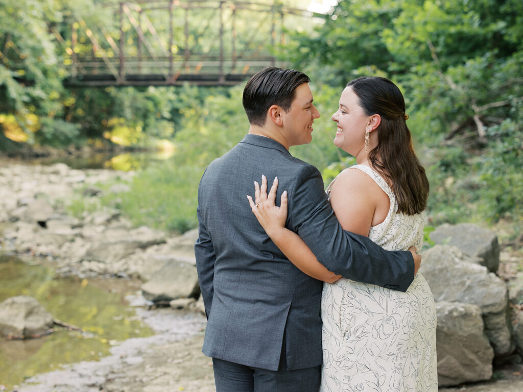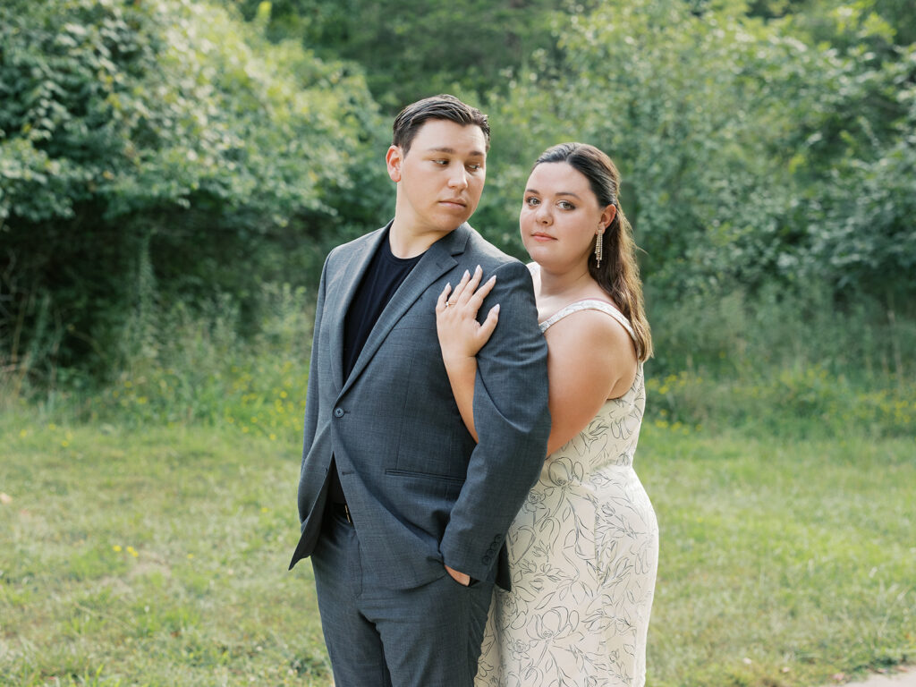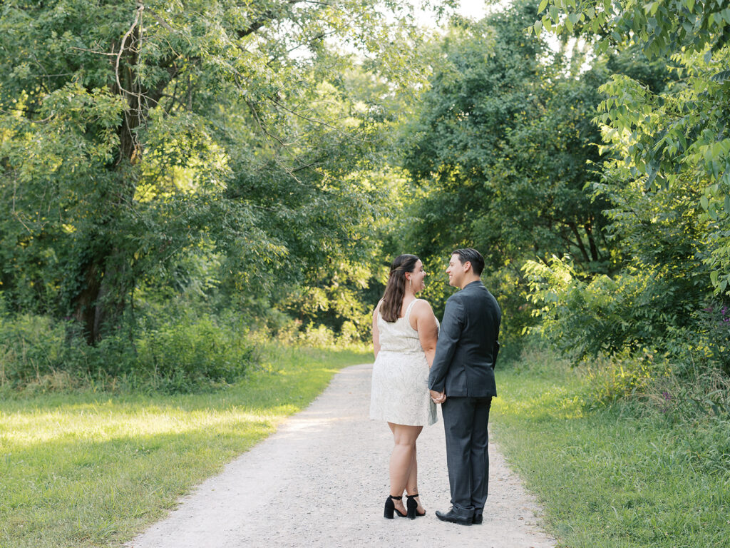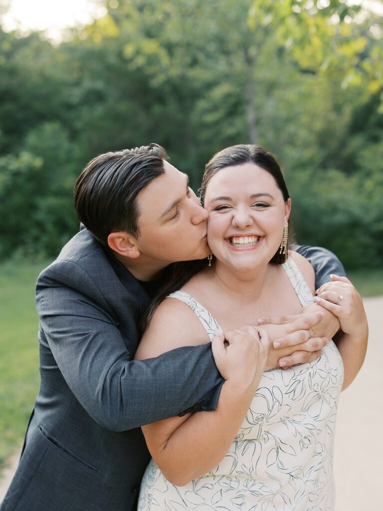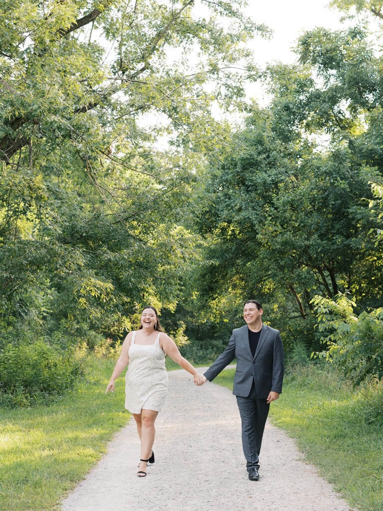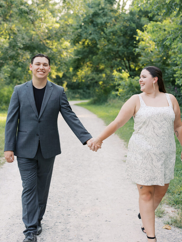 Summer evenings in Columbia, Missouri create the perfect setting for relaxed engagement photos. Warm light, lush greenery, and quiet park paths give couples space to slow down and simply enjoy being together. Katie and Ben’s engagement session captured exactly that feeling.