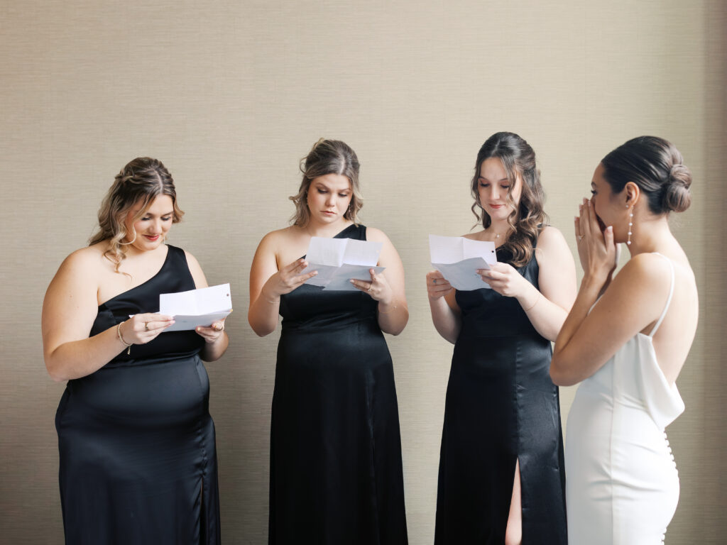 • Handwritten letters to the bridesmaids from the groom