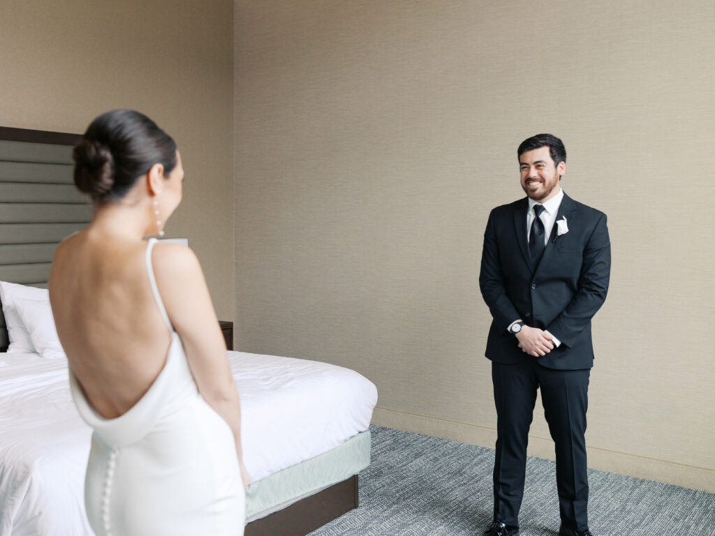 First looks are always a favorite part of a wedding day, and Maggie shared hers with her dad, her bridesmaids, and eventually Jared himself. Each moment was genuine, filled with joy and a little nervous energy, the kind of emotion that makes a gallery feel alive and timeless.