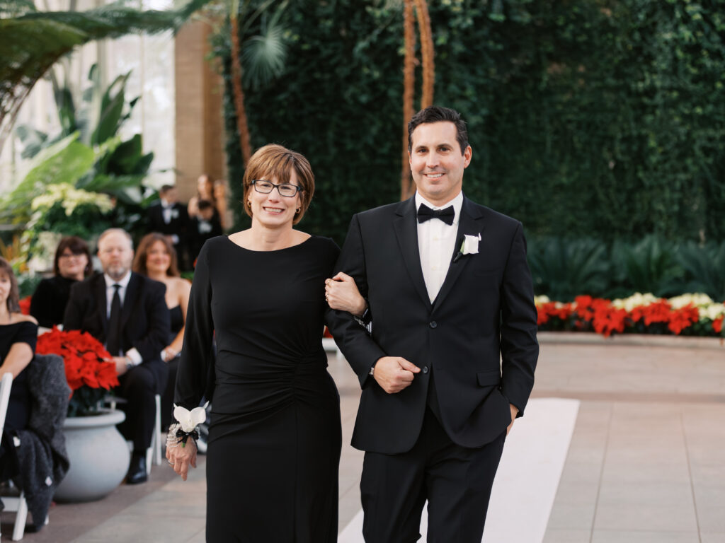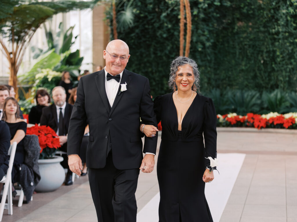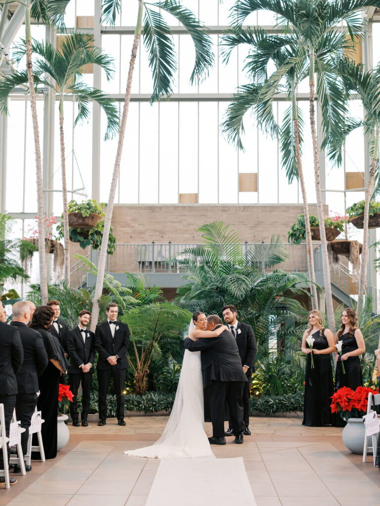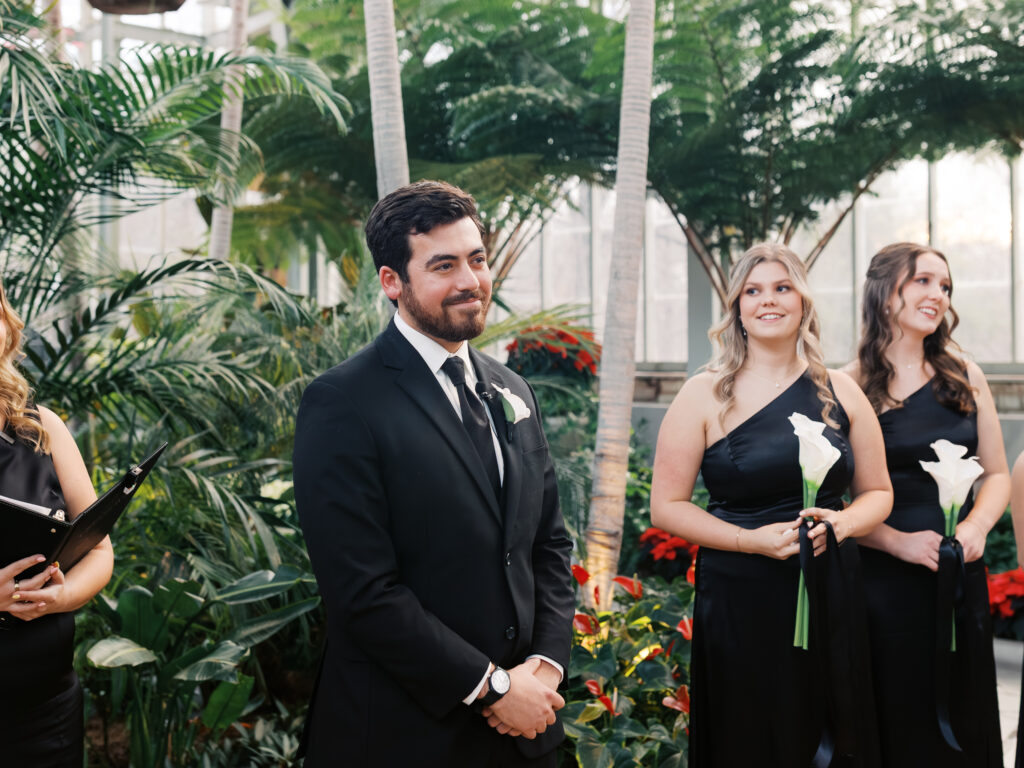 A January wedding at The Jewel Box and The Willow in St. Louis featuring black attire, personalized details, and joyful, timeless moments captured by a Saint Louis wedding photographer, Kiley Ann Photography.