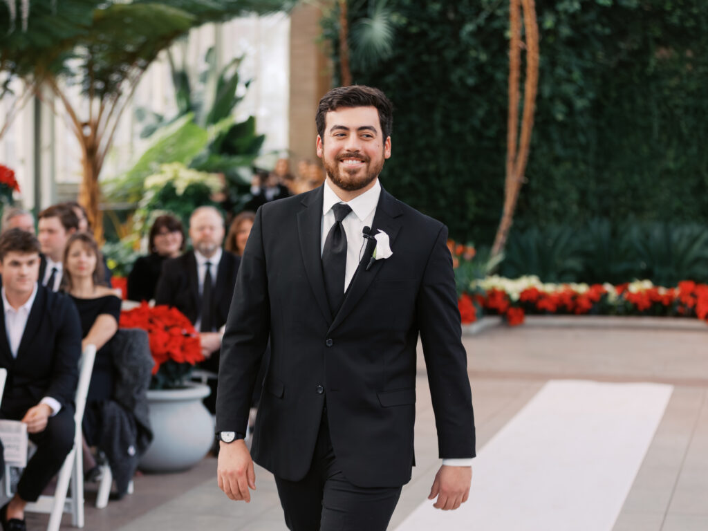Next, we traveled to The Jewel Box for the ceremony and family portraits. This venue is a gem in St. Louis, offering a light-filled, airy environment even in the depths of January. Maggie’s sister officiated the wedding, adding an intimate, personal touch that resonated with every guest.