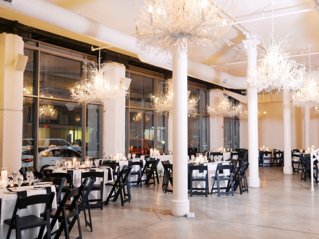 After the ceremony, we traveled back downtown to The Willow, where the couple’s reception awaited. Guests were greeted with the couple’s favorite baseball-themed food and more candles, creating a warm, inviting atmosphere.