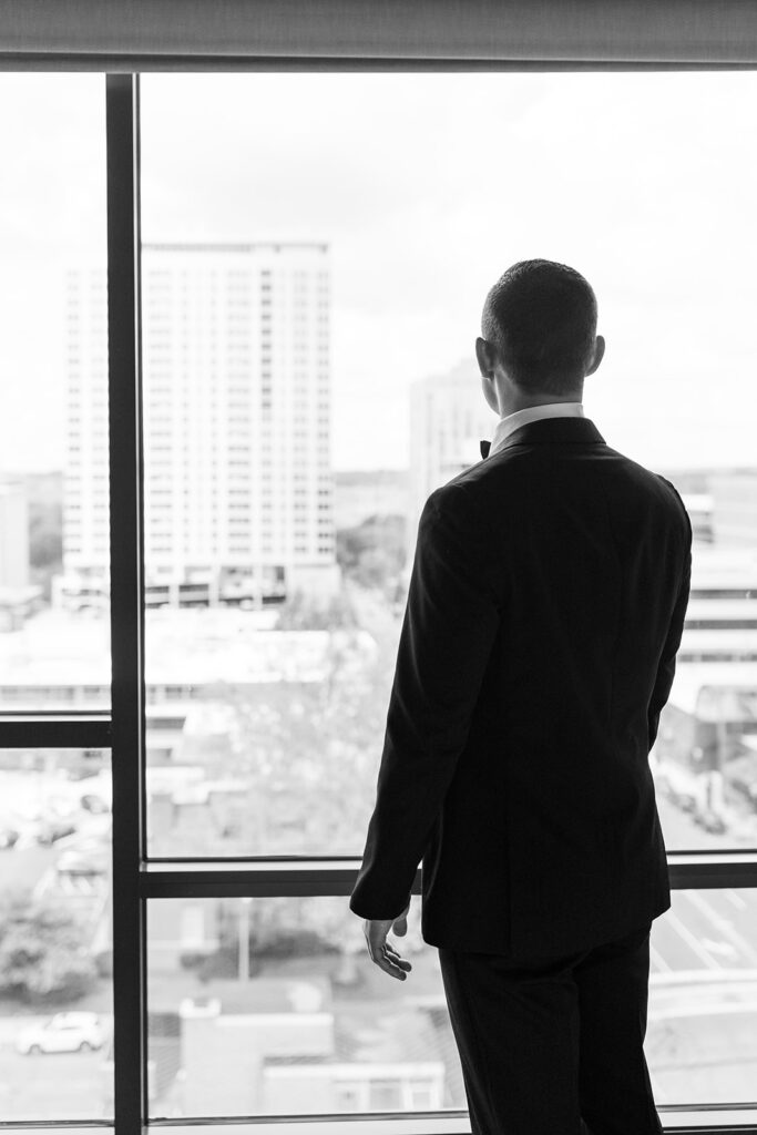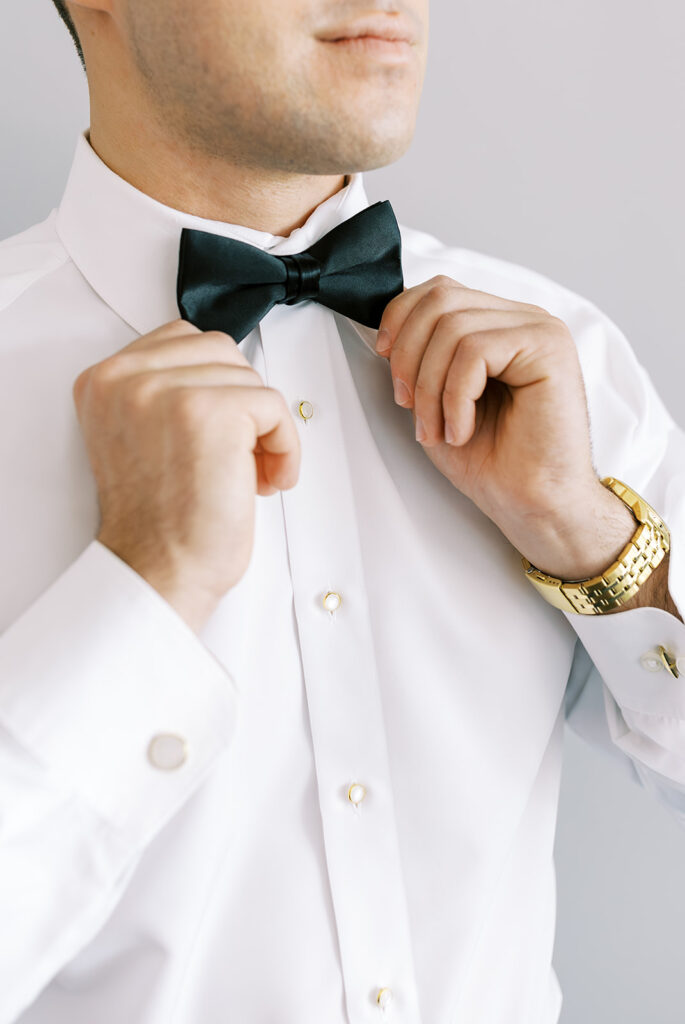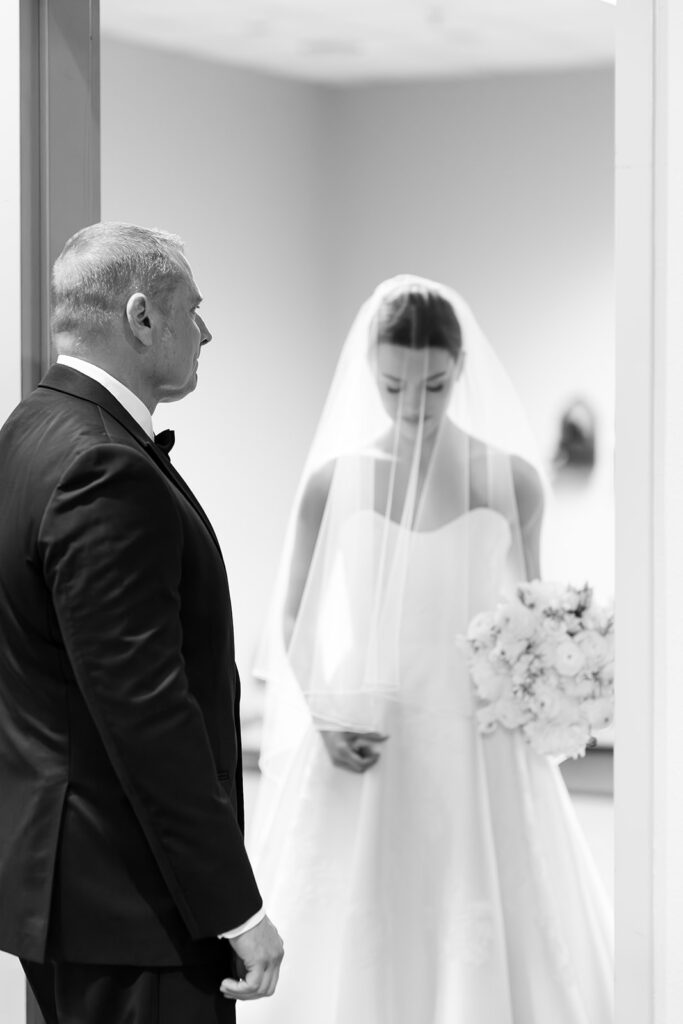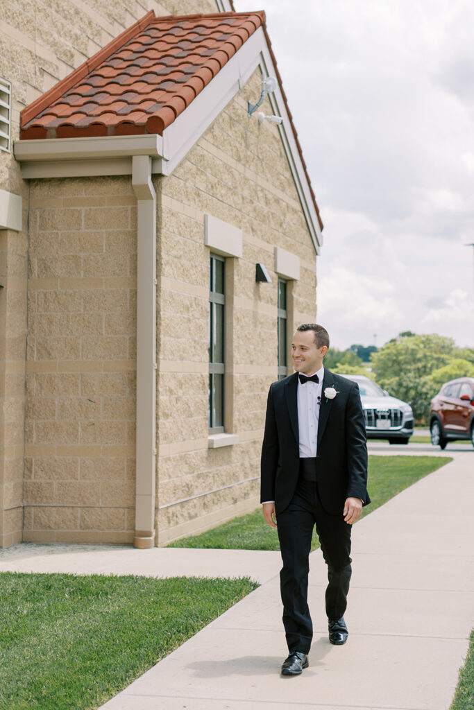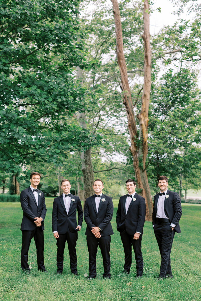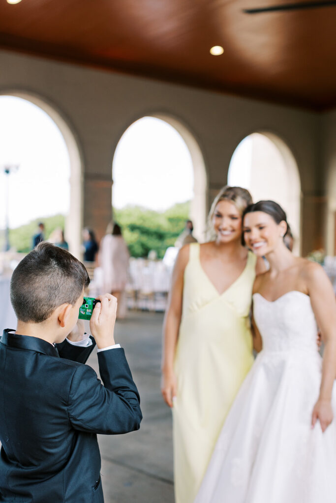 The black and white elements of the wedding party attire paired beautifully with the neutral architecture throughout the park. Madeleine’s bouquet, designed by Bloomin Buckets, featured mostly white blooms with soft greenery. The simplicity of the florals complemented the setting perfectly.