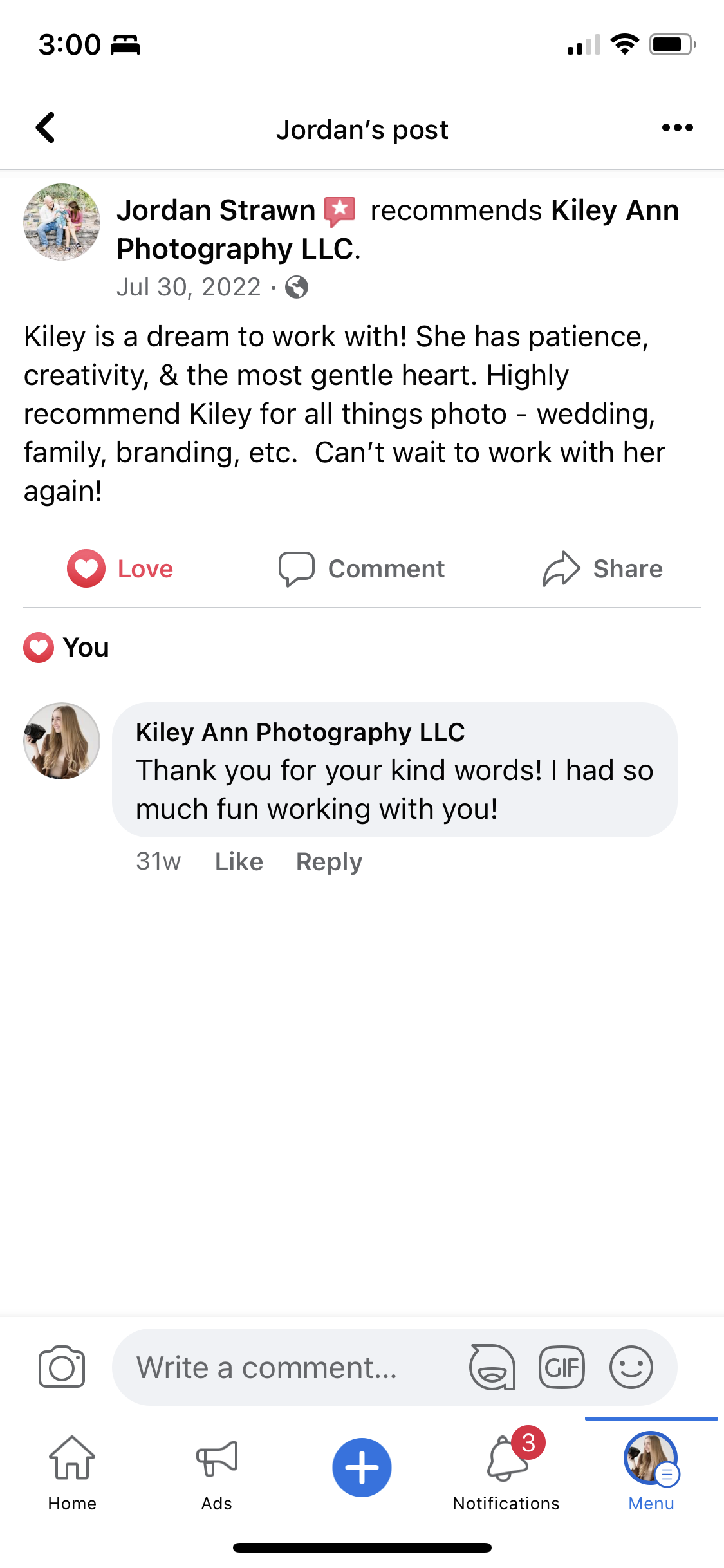 “We are so glad we found Kiley! She provides more than just great photos.”